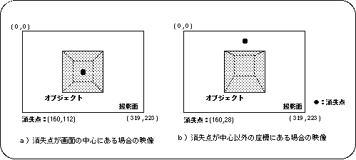 - Determines the line-of-sight direction, and the parameters are expressed as screen coordinate values. By changing this value, you can determine where distant objects converge on the screen.