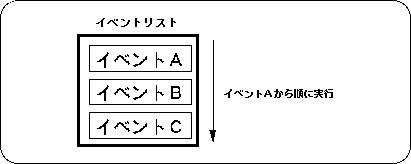 For example, when event A, event B, and event C are registered in the event list in order using the library function “slSetEvent”, each event is executed according to the event list in the order shown below.