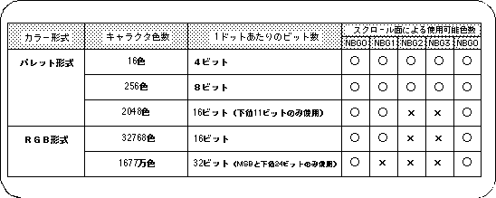 Note 1) When color RAM mode is 0 or 2, 2048 colors will be 1024 colors.