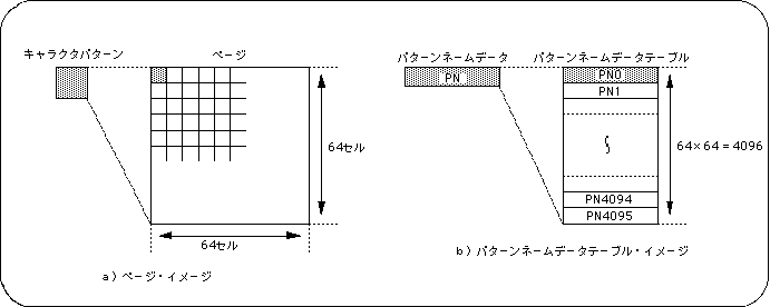 A page is a character pattern spread in a square of 64 x 64 cells. The actual data format is the pattern name data of each character pattern, which is stored in memory continuously as a table for 64 x 64 cells, which is called the pattern name data table.