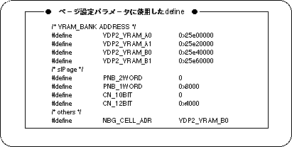 The following figure shows an example of actual page settings and a list of #defines used for page setting parameters.