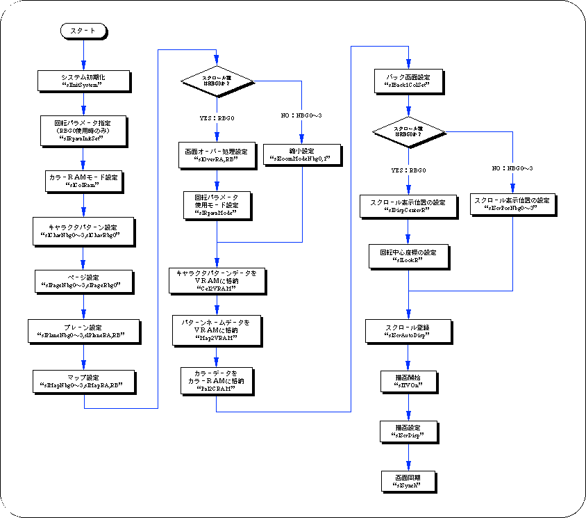Here, the flow from the initialization of scroll data to the actual drawing is shown in the flowchart, and it is summarized from the scroll function setting to the drawing.