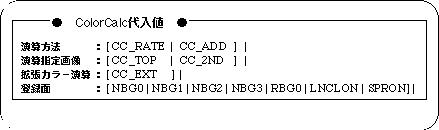 For details on the parameters, refer to “HARDWARE MANUAL vol.2: VDP2 User's Manual Chapter 12 Color Calculation”.