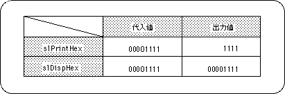 The function “slDispHex”, unlike “slPrintHex”, also displays the high-order bit 0 when displaying numerical values.