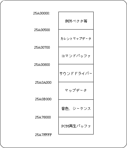 The memory map of the sound CPU is roughly as follows. If the PCM stream is not used, the PCM playback buffer is not required, so it can be used for sequence data.