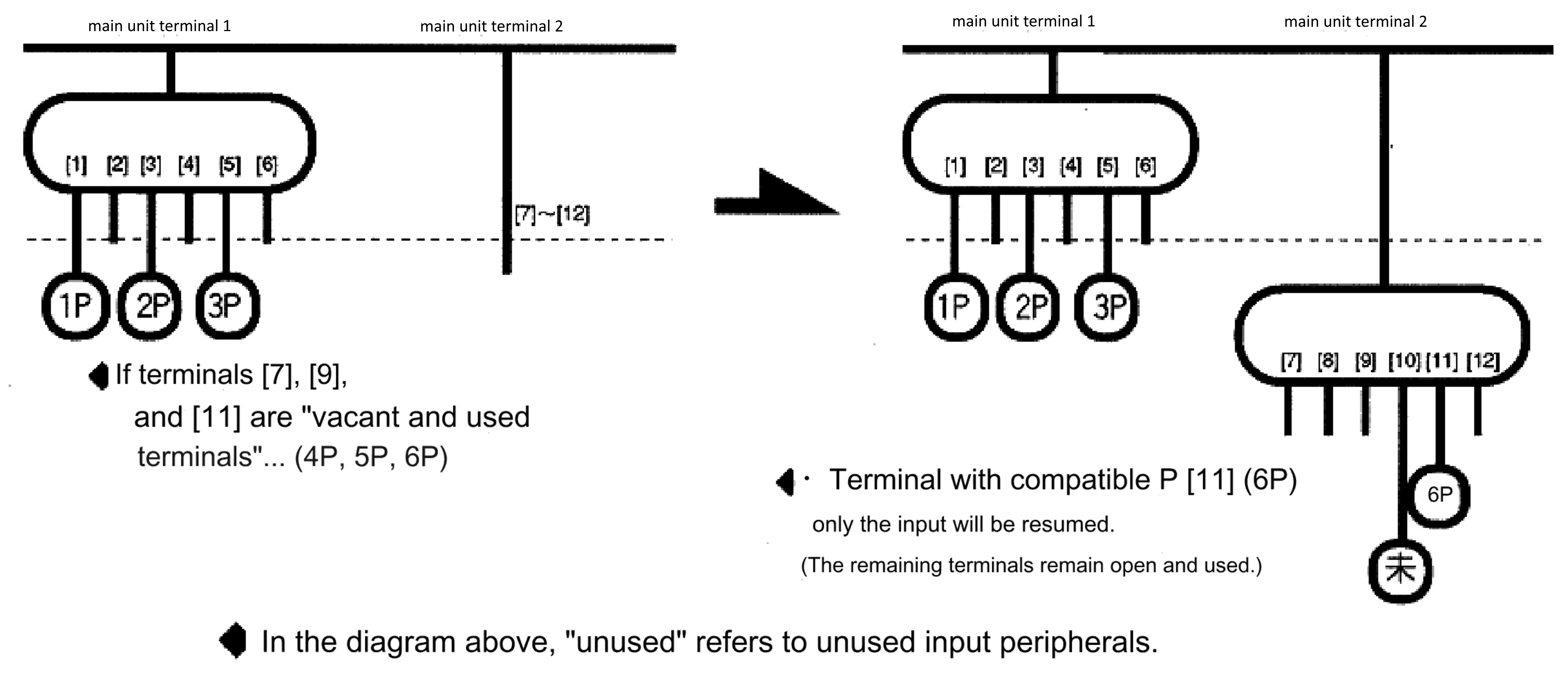 *The multi-terminal setting principle allows for free space between the terminals used, and also allows for additions during the main game in the case of [partial participation]. Therefore, if an additional terminal is inserted into a vacant terminal, there is a possibility that the operation number will be reversed.